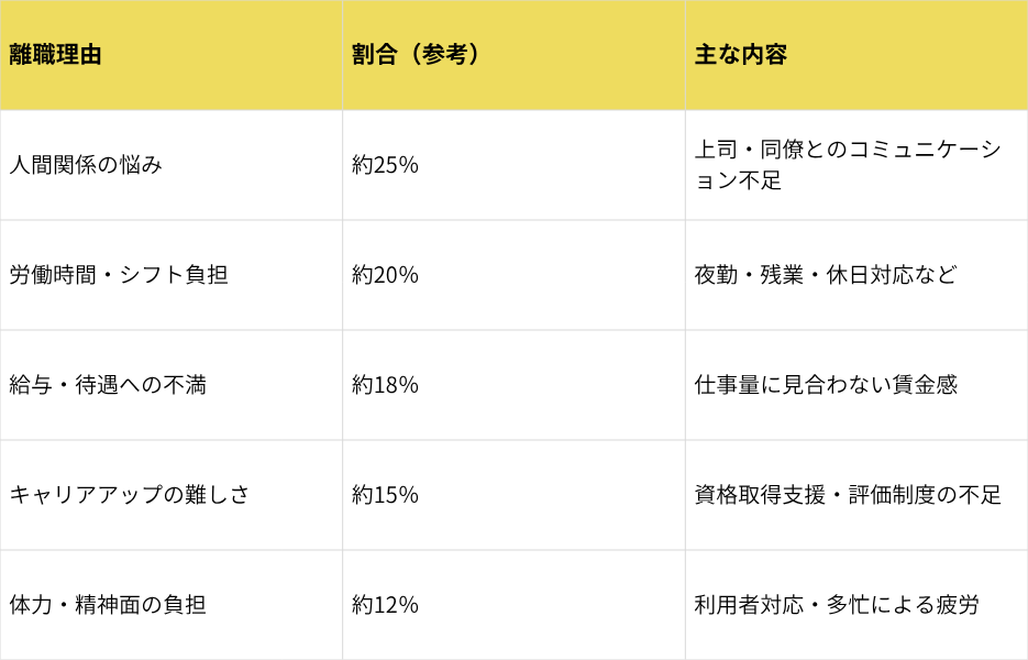 離職の主な理由(統計データから見る現場の声)
