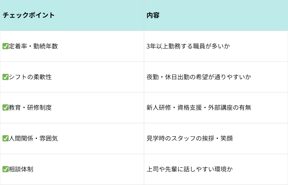 ※施設見学の際は、利用者だけでなく「職員の表情」にも注目!